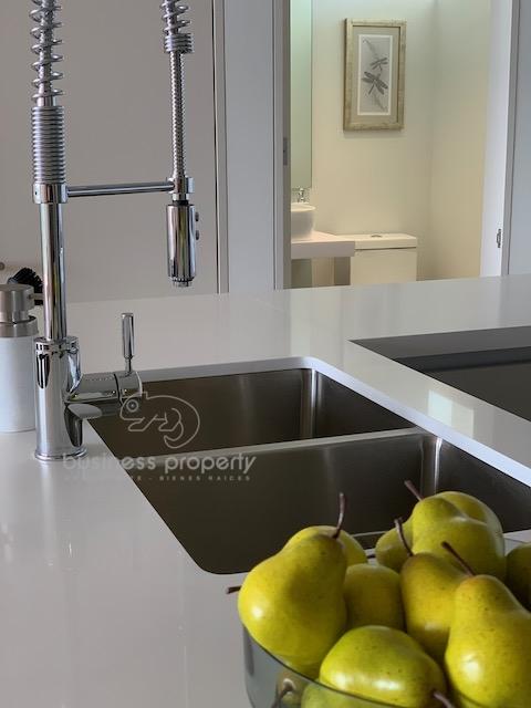 • Cocina tipo italiano con cubierta de cuarzo, equipada con parrilla, horno y microondas de marca SMEG.
